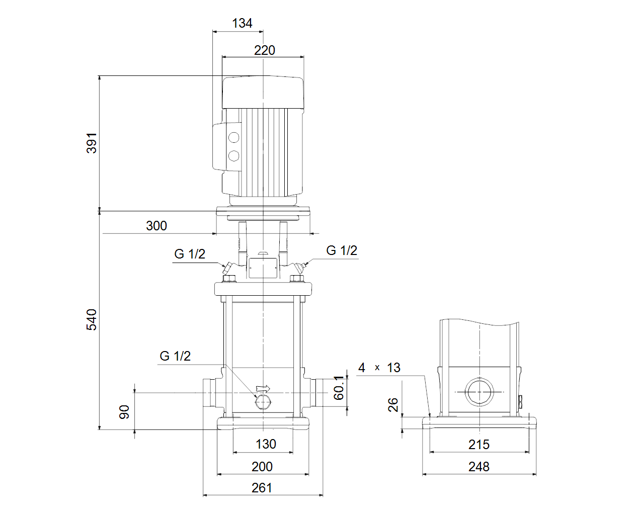 Вертикальный многоступенчатый центробежный насос свсасывающим инапорным патрубками, расположенными наодном уровне («ин-лайн»), что обеспечивает возможность установки вгоризонтальной однотрубной системе. Части насоса, контактирующие сжидкостью, выполнены извысококачественной нержавеющей стали. Картриджное уплотнение вала обеспечивает высокую надежность, безопасное использование илегкий доступ для обслуживания. Вращение передается через разъемную муфту. Соединение трубопровода выполняется спомощью муфт PJE (Victaulic(r)). Насос оснащен асинхронным 3-фазным электродвигателем налапах, своздушным охлаждением.