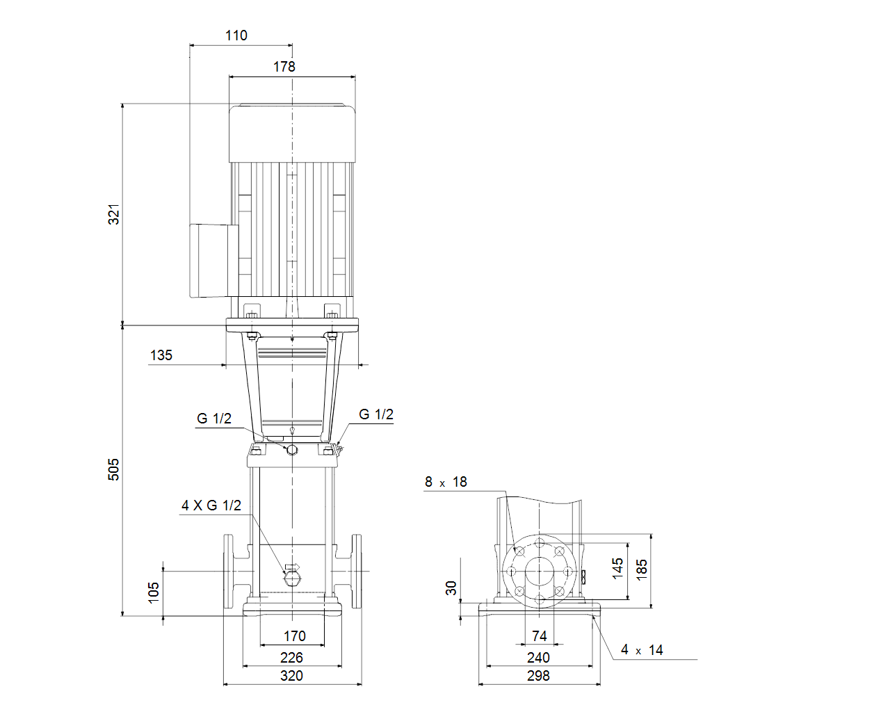 Вертикальный многоступенчатый центробежный насос свсасывающим инапорным патрубками, расположенными наодном уровне («ин-лайн»), что обеспечивает возможность установки вгоризонтальной однотрубной системе. Части насоса, контактирующие сжидкостью, выполнены извысококачественной нержавеющей стали. Картриджное уплотнение вала обеспечивает высокую надежность, безопасное использование илегкий доступ для обслуживания. Вращение передается через разъемную муфту. Соединение трубопровода выполняется спомощью фланцев стандарта DIN. Насос оснащен асинхронным 3-фазным электродвигателем налапах, своздушным охлаждением.