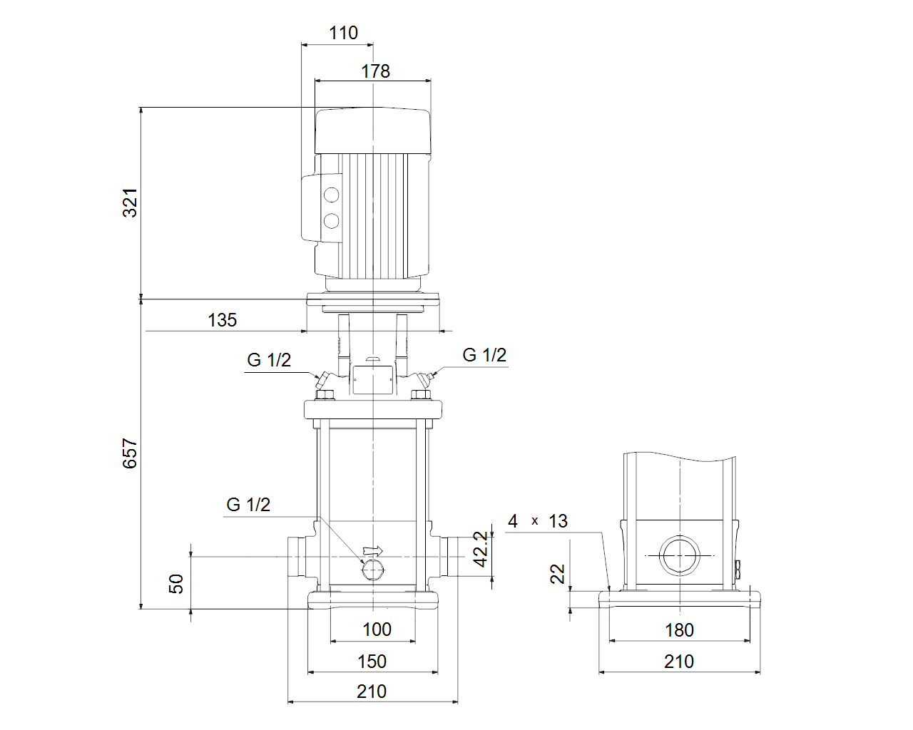 Вертикальный многоступенчатый центробежный насос свсасывающим инапорным патрубками, расположенными наодном уровне («ин-лайн»), что обеспечивает возможность установки вгоризонтальной однотрубной системе. Части насоса, контактирующие сжидкостью, выполнены извысококачественной нержавеющей стали. Картриджное уплотнение вала обеспечивает высокую надежность, безопасное использование илегкий доступ для обслуживания. Вращение передается через разъемную муфту. Соединение трубопровода выполняется спомощью муфт PJE (Victaulic(r)). Насос оснащен асинхронным 3-фазным электродвигателем налапах, своздушным охлаждением.