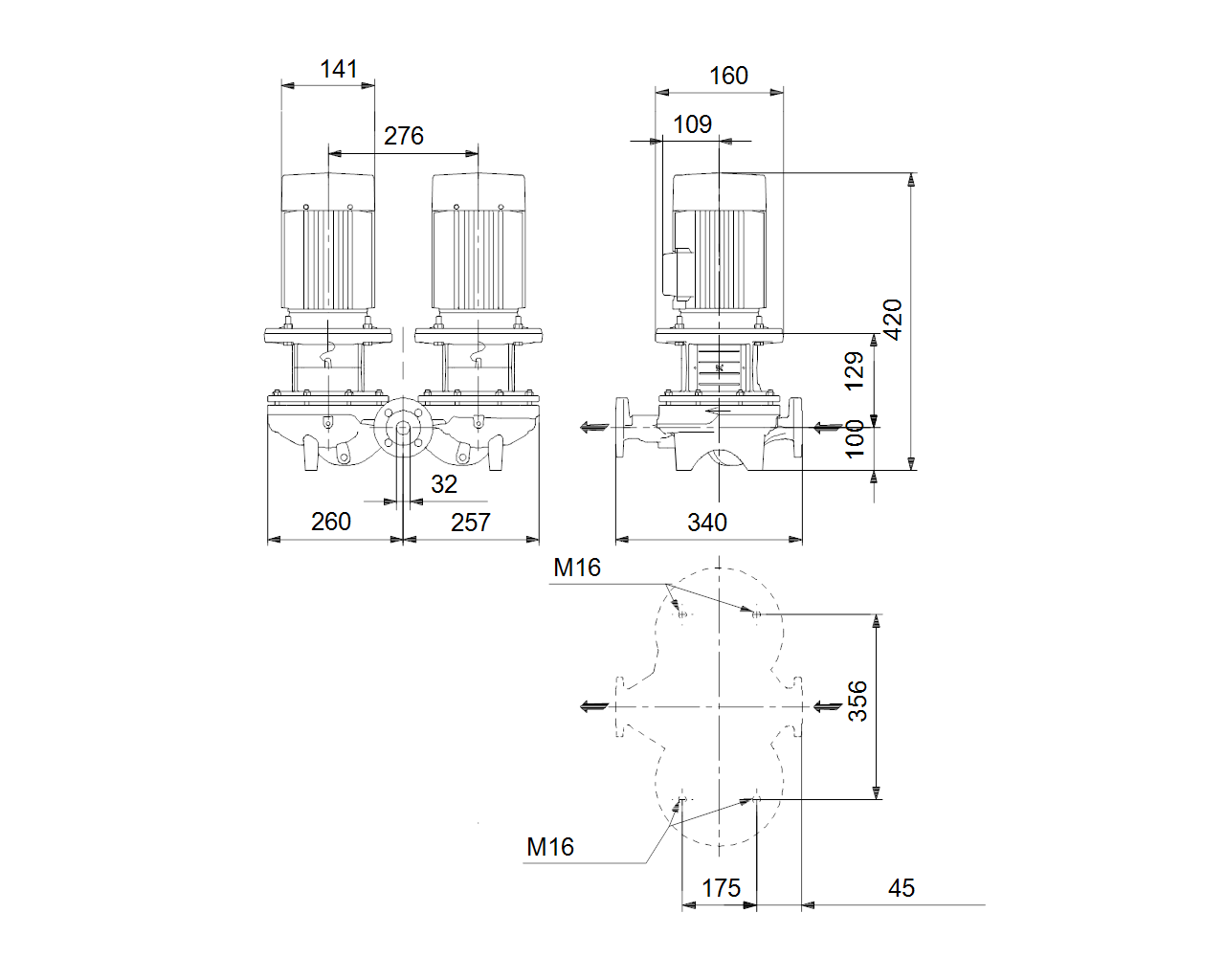 Одноступенчатый, без соединительной муфты, центробежный свсасывающим ивыпускным патрубками наодной линии. Сдвоенный насос спроектирован сдвумя параллельными головными частями. Насос имеет конструкцию извлечения сверху,