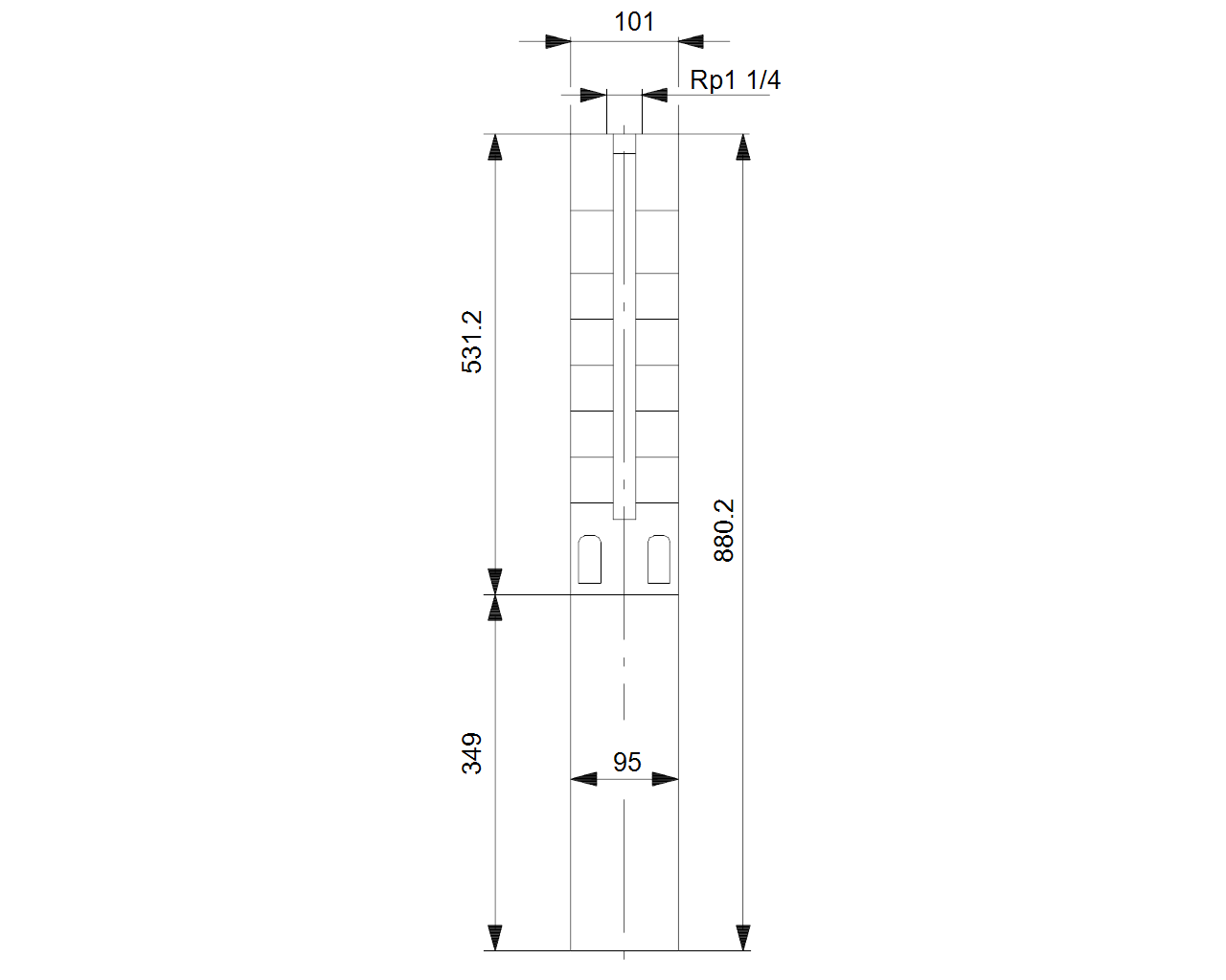 Погружной скважинный насос, предназначенный для перекачивания чистой воды. Можно устанавливать как ввертикальном, так ивгоризонтальном положениях. Все металлические детали изготовлены изнержавеющей стали, EN1.4301 (AISI 304), которая обеспечивает высокую коррозионную стойкость. Данный насос разрешен для перекачивания питьевой воды. Насос оснащен электродвигателем MS4021.1 кВт сзащитой отпеска, манжетным уплотнением, опорными подшипниками сводяной смазкой имембраной для компенсации объема. Электродвигатель представляет собой погружной двигатель вгерметическом исполнении, обладающий хорошей механической стабильностью ивысоким КПД. Подходит для температур до40 °C. Электродвигатель неоснащен датчиком температуры. Если требуется контроль температуры, можно установить датчик Pt1000. Электродвигатель предназначен для прямого пуска отсети при полном напряжении (DOL).