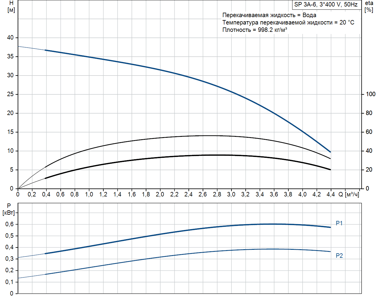 Погружной скважинный насос, предназначенный для перекачивания чистой воды. Можно устанавливать как ввертикальном, так ивгоризонтальном положениях. Все металлические детали изготовлены изнержавеющей стали, EN1.4301 (AISI 304), которая обеспечивает высокую коррозионную стойкость. Данный насос разрешен для перекачивания питьевой воды. Насос оснащен электродвигателем MS4020.37 кВт сзащитой отпеска, манжетным уплотнением, опорными подшипниками сводяной смазкой имембраной для компенсации объема. Электродвигатель представляет собой погружной двигатель вгерметическом исполнении, обладающий хорошей механической стабильностью ивысоким КПД. Подходит для температур до40 °C. Электродвигатель неоснащен датчиком температуры. Если требуется контроль температуры, можно установить датчик Pt1000. Электродвигатель предназначен для прямого пуска отсети при полном напряжении (DOL).
